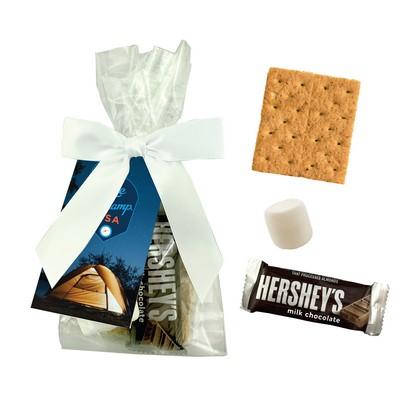 Kit Includes One 5" x 2.5" Graham Cracker Sheet, One Hershey's Fun Size Milk Chocolate Bar (0.5 oz) and One Marshmallow. Makes One Serving. Pricing Includes 4-Color Imprint in 1-Location On GIft Card. Complies with Prop 65. 3 1/2" W x 6 1/2" H x 2" D.