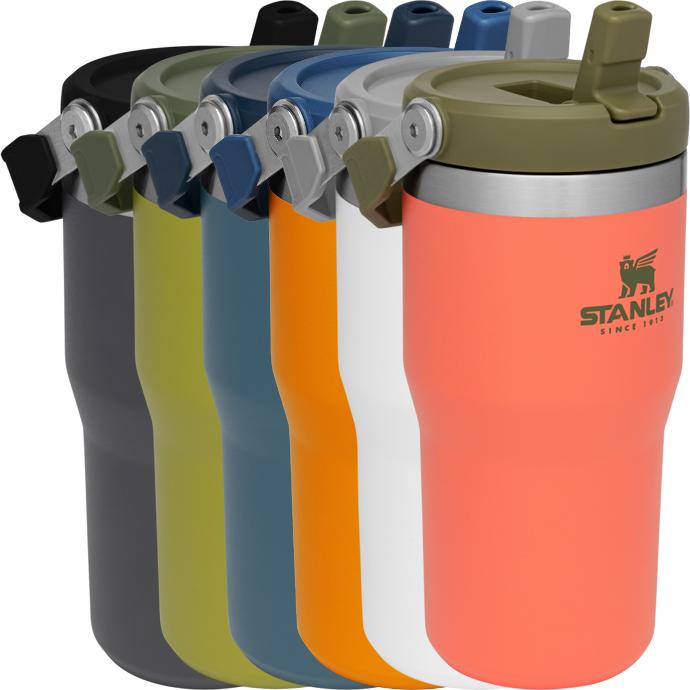Hit the road to adventure or a high-intensity spin class at home. This tumbler ensures that you always have crisp, cold hydration in hand. The ergonomic shape and built-in flip straw mean you can sip easily and effortlessly. It snaps tight to stay fully leakproof. Stanley's double-wall vacuum insulation keeps your drinks icy cold and a rotating handle makes it easy to take anywhere.